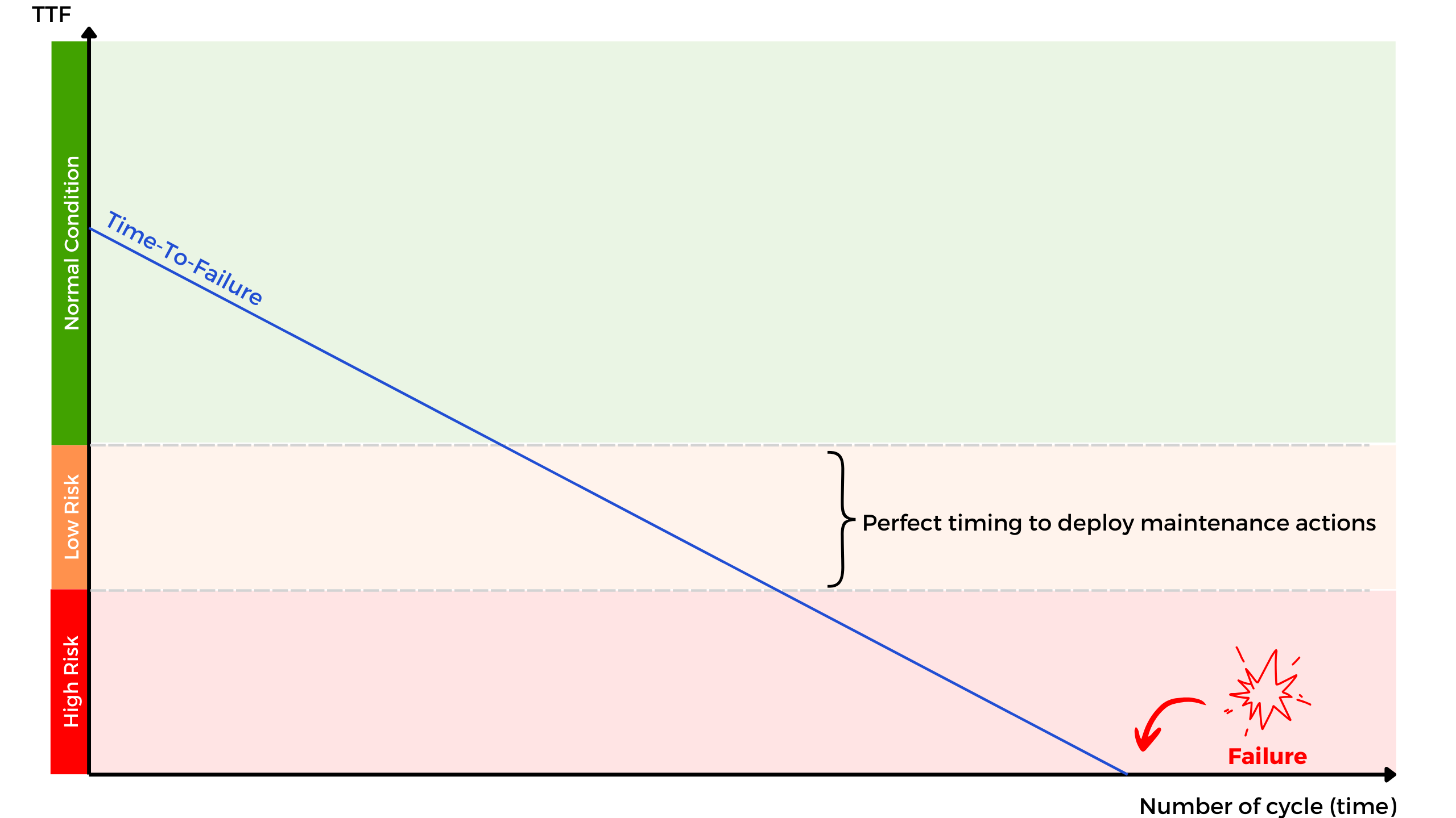 We monitored a hundred turbines over an extended period. This monitoring allowed us to collect numerical readings from over twenty sensors (temperature, pressure, vibrations, etc.), as well as an assessment of failure risk through the TTF (Time-To-Failure).